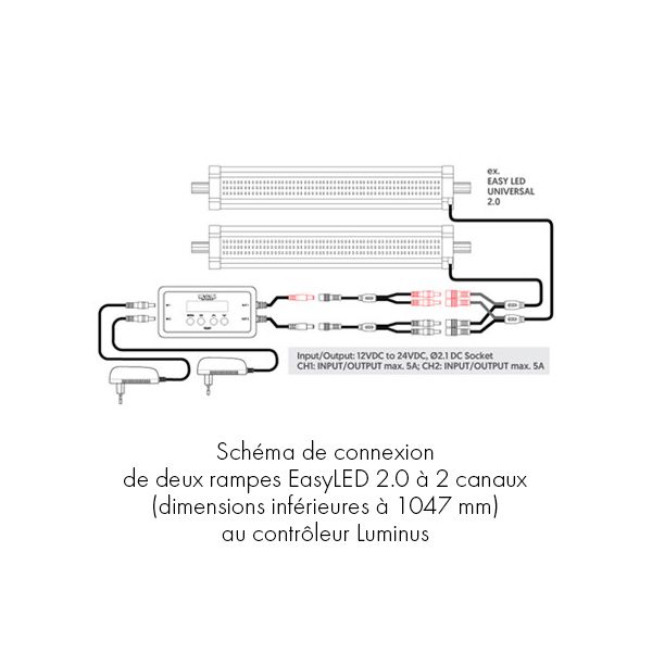 Réponse : Bonjour, oui ce contrôleur peut être connecté à 2 rampes 895mm de chez Aquatlantis.